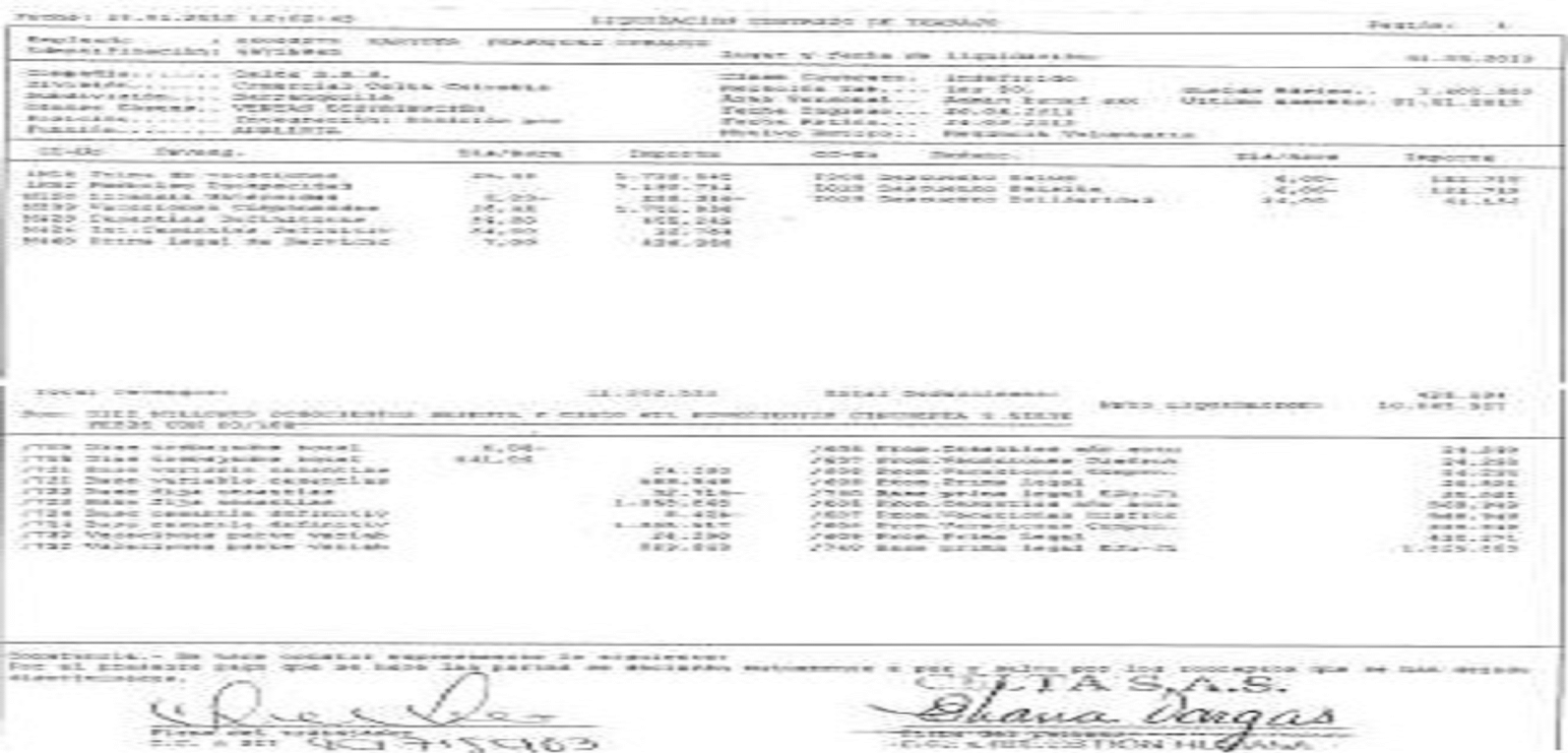 Nomina catorcenal. De los días laborados del señor Julio Ballesteros Molina.