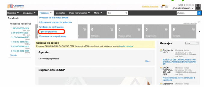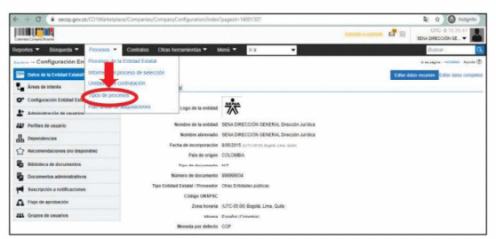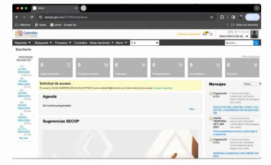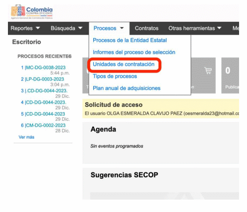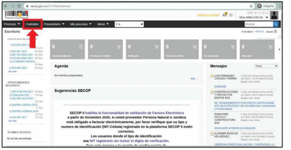 Luego, ingresará al área de trabajo de la Entidad seleccionada en SECOP II así: