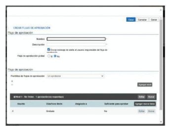 - FLUJOS DE APROBACIÓN: Los flujos de aprobación hacen las veces de proyectó, revisó, visto bueno y firma de los documentos, siendo la firma electrónica de cada usuario al que se le designe determinada tarea dentro del proceso, y deben ser creados con posterioridad al equipo. Para el caso de la Dirección General en la contratación de Bienes y Servicios deberá ser configurado así: