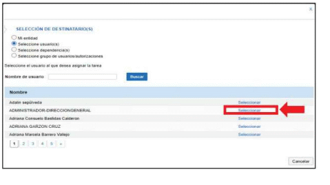 10. Se recomienda que se seleccione siempre la opción de "Seleccione usuario" con el fin que se asigne directamente aun responsable.