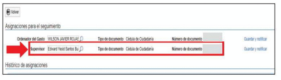 Una vez se suba el documento de verificación y este sea aprobado por el ordenador del gasto, se verá reflejado así: