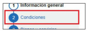 - APROBACIÓN DE GARANTÍAS: La aprobación final de la garantía la tiene que realizar el ordenador del gasto según corresponda, que se verá reflejado en el flujo de aprobación. En cuanto la revisión de las garantías será efectuada por cada dependencia de la Dirección General, y se realiza de forma electrónica en el portal SECOP II33posterior al cargue de la misma por parte del proveedor. Para esto, debe consultar el contrato como se indica en el numeral 2.2.3.1 y dar clic en la opción "2. Condiciones":