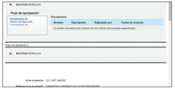 Cuando realice dicha acción, podrá visualizar el seguimiento de aprobaciones de la garantías conforme a como se haya configurado según el numeral 2.1.9.2.