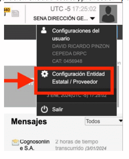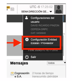 Deberá seleccionar "configuración entidad estatal/proveedor" y ciarle Clic
