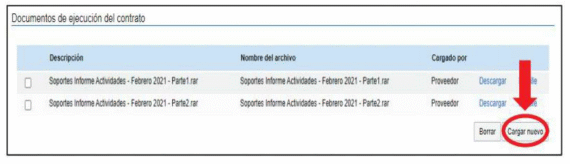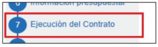 Al momento de consultar el contrato como se indica en el numeral 2.2.3.1, debe verificar en la opción "7. Ejecución del Contrato" y ubicar la sección de "Documentos de ejecución del contrato":