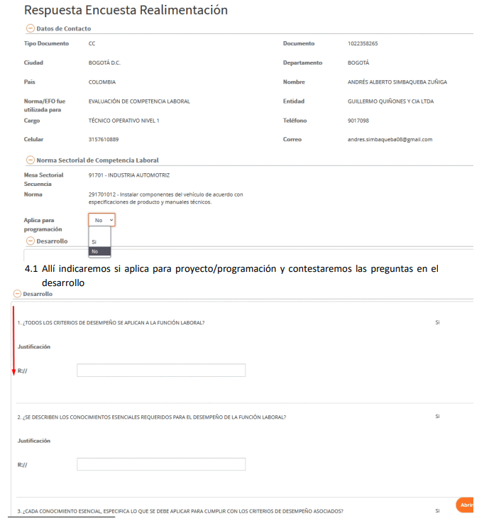 4. Este nos enviará a la siguiente ventana donde registraremos la respuesta a la encuesta para dar cierre a la misma