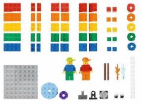 | Kit de expresión mediante la construcción compuesto por 200 piezas entre las cuales se encuentran mini figuras, plantas, flores, piñones, neumáticos, bloques, ruedas, plancha y piezas de construcción. Referencia: 45110 | 6 | ![]() |