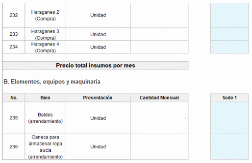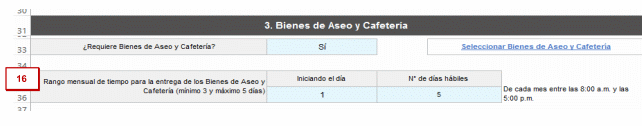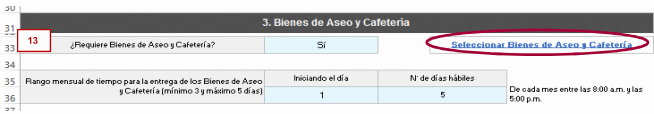 Nota: Para la adición de bienes de aseo y cafetería nuevos, debe agregar un nuevo registro “+agregar elemento”: