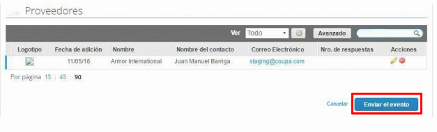 | Creación evento de cotización | 30 de noviembre | |