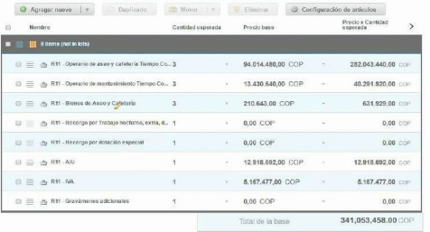 | 2 | nit1234 | R11 - Operario de cafetería Tiempo Completo - 2 | 9.0 | Mes | 234,002.106,00 |