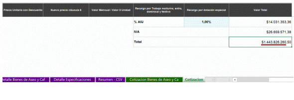 | Aseo Tiempo Completo | $1.239.000 | 2 | 9 | $73.101 | $1.315.818,00 |