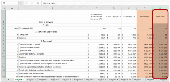 | 3 | 00- 1298 | R11 - Operario auxiliar Tiempo Completo -1 | 9.0 | Mes | 234.002.106.00 |