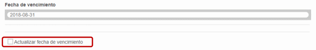 (ii) En caso de prolongar el tiempo del servicio, deberá también prolongar el plazo de ejecución de la Orden de Compra en el campo “Cambios Requeridos” y dar clic en “Actualizar Fecha de Vencimiento” y diligenciar la nueva fecha.