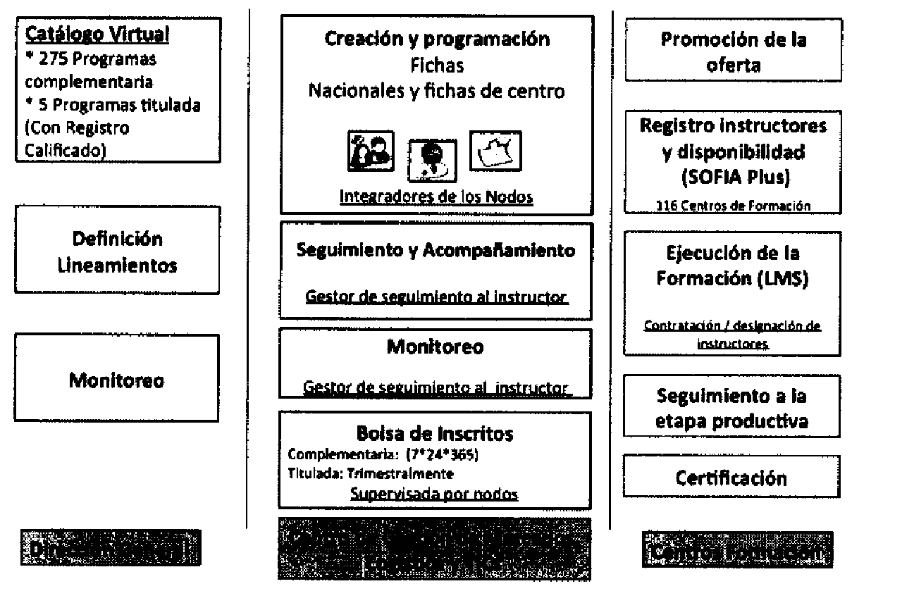 Los nodos designados para esta estrategia de operación, dependerán administrativamente del Centro de Gestión de Mercados Logística y TIC de la regional Distrito Capital, esta administración significa que los procesos de contratación y la supervisión para el personal de los noclos previstos, se realizan en este Centro de Formación, pues su operación será de carácter nacional; dada las particularidades de formación virtual.