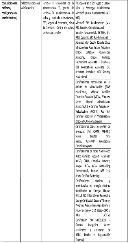 | afines a las Tecnologías de la Información con mínimo unacertificación en: IBM AI Engineering Professional Certificate (Coursera / IBM), TensorFlow Developer Certificate o certificaciones equivalentes. | modelos de aprendizaje automático (Machine Learning), redes neuronales profundas (Deep Learning), procesamiento de lenguaje natural (NLP), visión por computadora o automatización inteligente de procesos mediante el uso de frameworks y librerías especializadas como TensorFlow, PyTorch, Scikit- learn o Keras. | automatización y manejo de entornos de desarrollo en Python o R. | ||