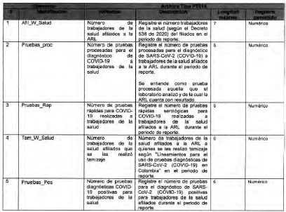 Anexo Técnico Archivo tipo PT018 - Seguimiento a la detección de casos de COVID-19 en trabajadores de la salud por parte de la ARL