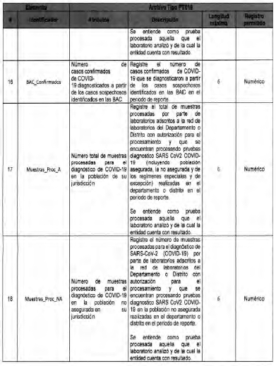 Anexo Técnico Archivo tipo PT016 - Seguimiento a la detección de casis de COVID-19 en las Entidades Territoriales