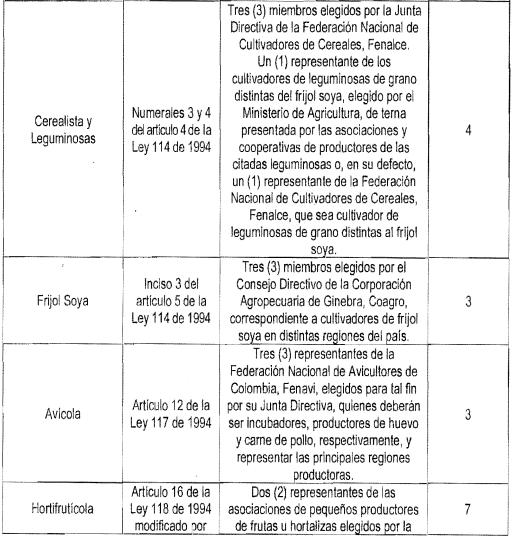 - Numeral 4 del artículo 4o de la Ley 114 de 1994 (Fondo de Fomento Cerealista);