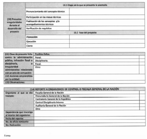 Los jefes de planeación y de las oficinas de control interno de los ministerios y departamentos administrativos realizarán informes trimestrales sobre el cumplimiento de la presente directiva a la Vicepresidencia de la República de Colombia por conducto de la Secretaría de Transparencia de la Presidencia de la República, de conformidad con el formato anexo, indicando si han existido hechos de falta de transparencia o actos de corrupción en el proceso del pronunciamiento del concepto técnico, en la participación de las mesas técnicas, publicación de los conceptos y/o acompañamientos técnicos.