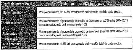 Tabla 3. Meta mínima ACTI por sector sobre inversión total.