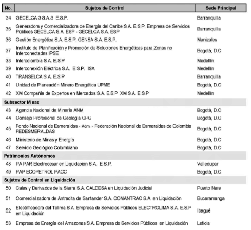 ARTÍCULO 8o. CONTRALORÍA DELEGADA PARA EL SECTOR MINAS Y ENERGÍA. <Resolución derogada por el artículo 31 de la Resolución 62 de 2020> La Contraloría Delegada para el Sector Minas y Energía será competente para ejercer la vigilancia y el control fiscal a los siguientes sujetos de control: