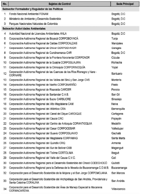 ARTÍCULO 3o. CONTRALORÍA DELEGADA PARA EL MEDIO AMBIENTE. <Resolución derogada por el artículo 31 de la Resolución 62 de 2020> La Contraloría Delegada para el Medio Ambiente será competente para ejercer la vigilancia y el control fiscal a los siguientes sujetos de control: