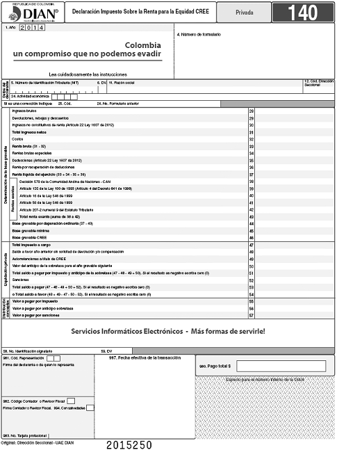 Por la cual se prescriben formularios para el cumplimiento de las obligaciones tributarias, correspondientes al año 2015.