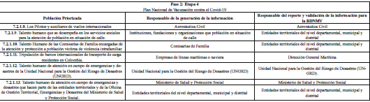 ARTÍCULO 3o. RESPONSABLES DE LA GENERACIÓN Y REPORTE DE INFORMACIÓN. A continuación, se establecen los responsables de la generación de información, así como los responsables del reporte de la misma al Ministerio de Salud y Protección Social, de las personas que integran las etapas 2, 3 y 4 de que trata el artículo 7o del Decreto 109 de 2021, modificado por los Decretos 404 y 466 de 2021, discriminado por etapas y grupos poblacionales:
