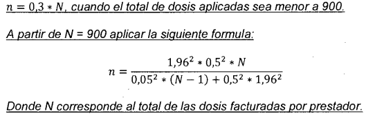 8.2.1. Para la validación de las vacunas aplicadas por cada prestador se obtendrá una muestra de tamaño n sobre el total de la registrada y dispuesta de PAIWEB en cada uno de los procesos, de la siguiente manera: