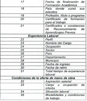 "Artículo 2o. Contenido mínimo de la hoja de vida. Para efectos del Registro de Oferentes de Mano de Obra la información mínima de la hoja de vida corresponde a las siguientes variables: