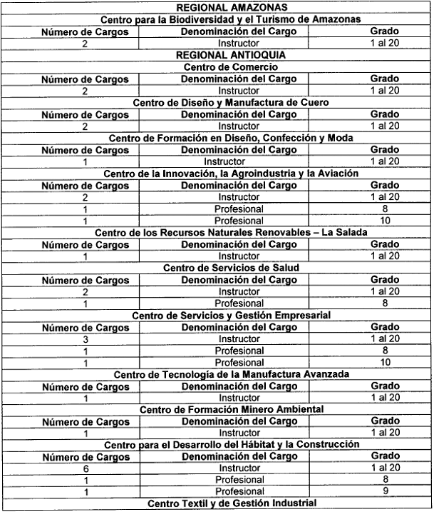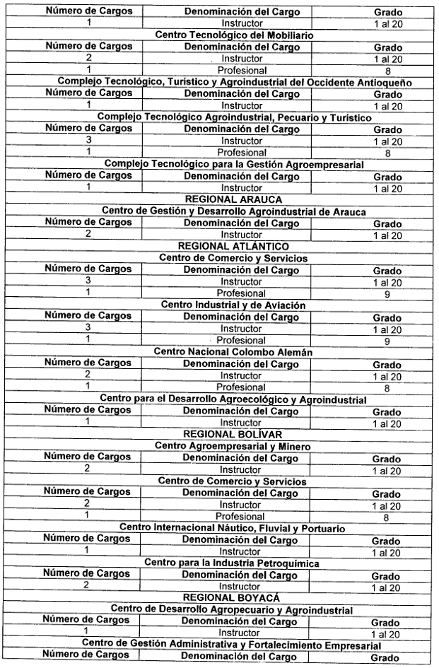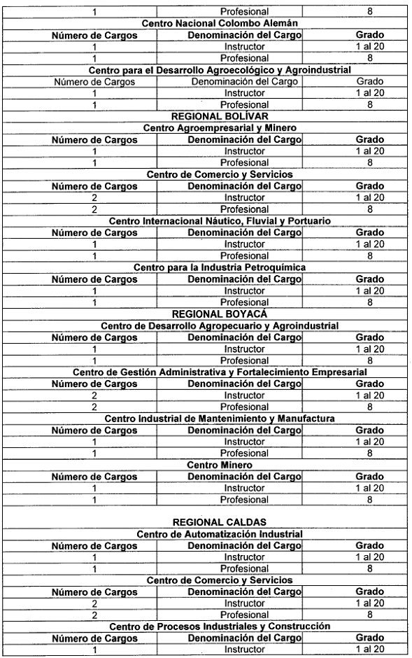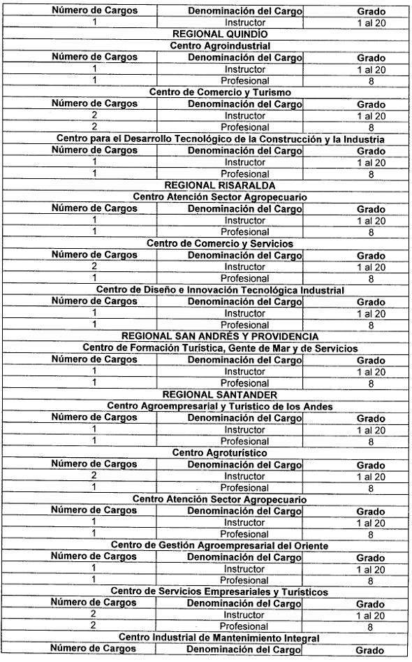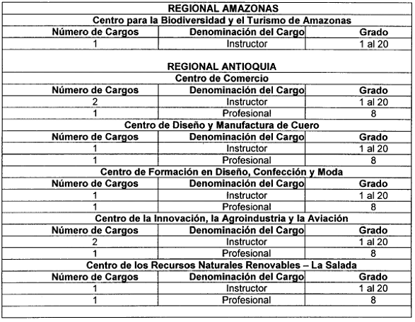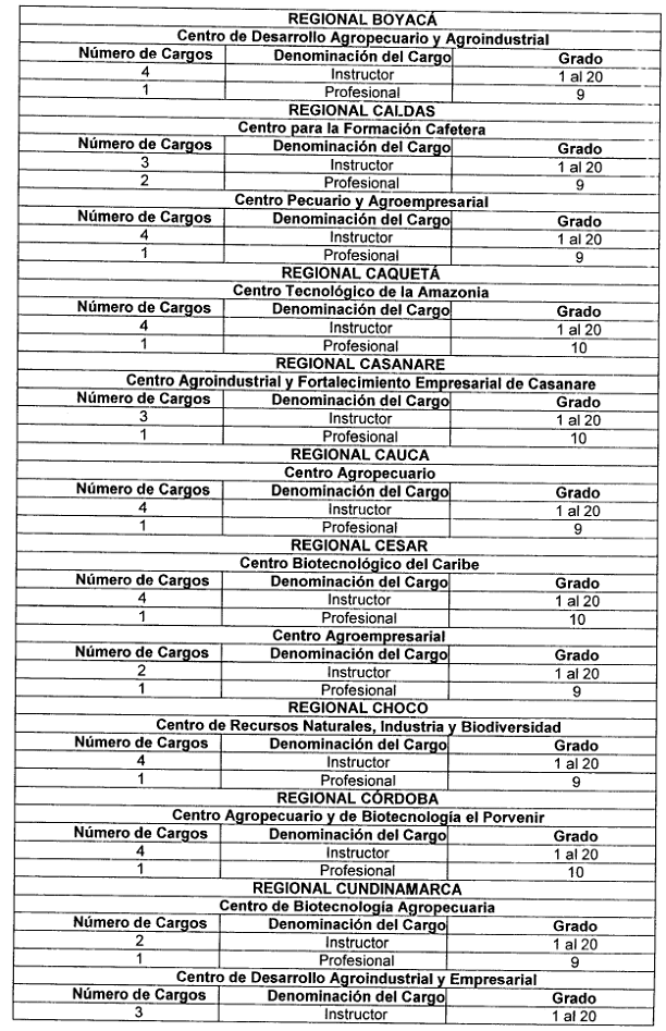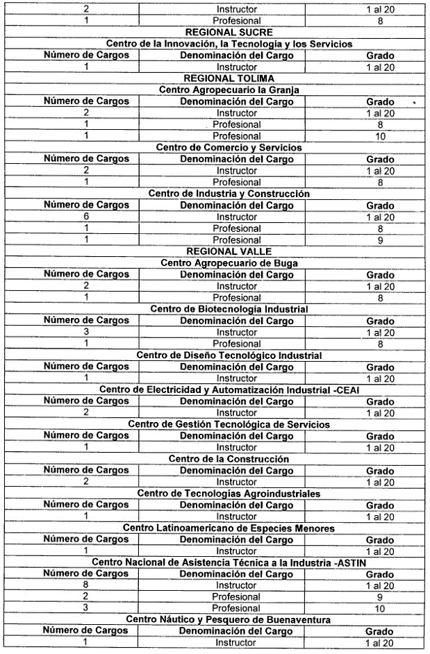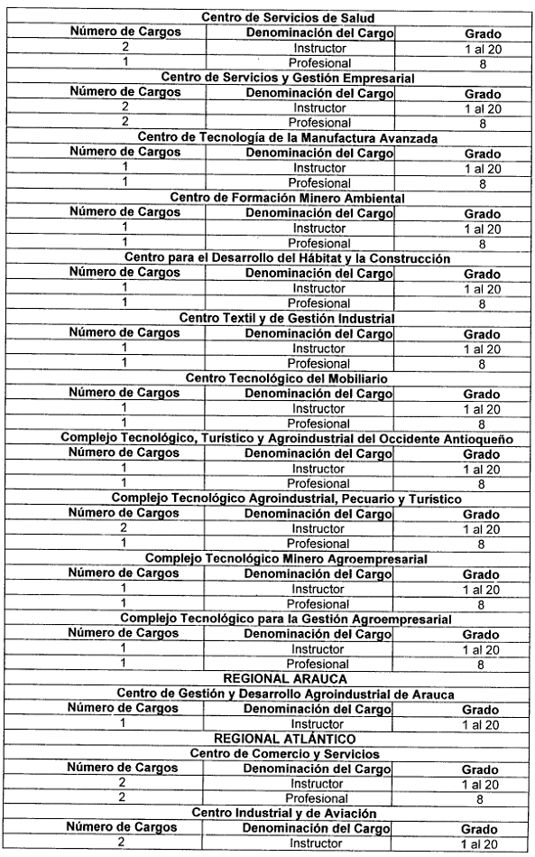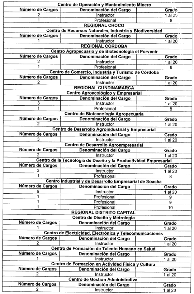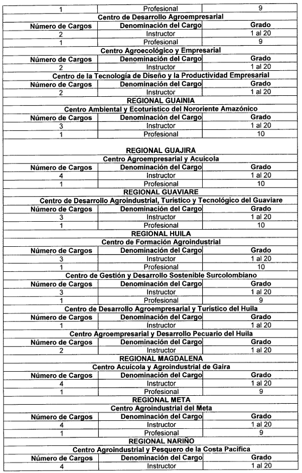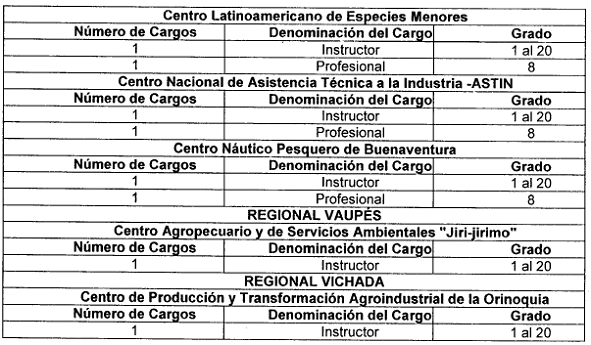 Que a través del Decreto 553 del 30 de marzo de 2017, se crearon 800 empleos temporales en la planta de personal del Servicio Nacional de Aprendizaje - SENA, a efectos de atender los proyectos especiales de Bilingüismo, Sennova y Agrosena.