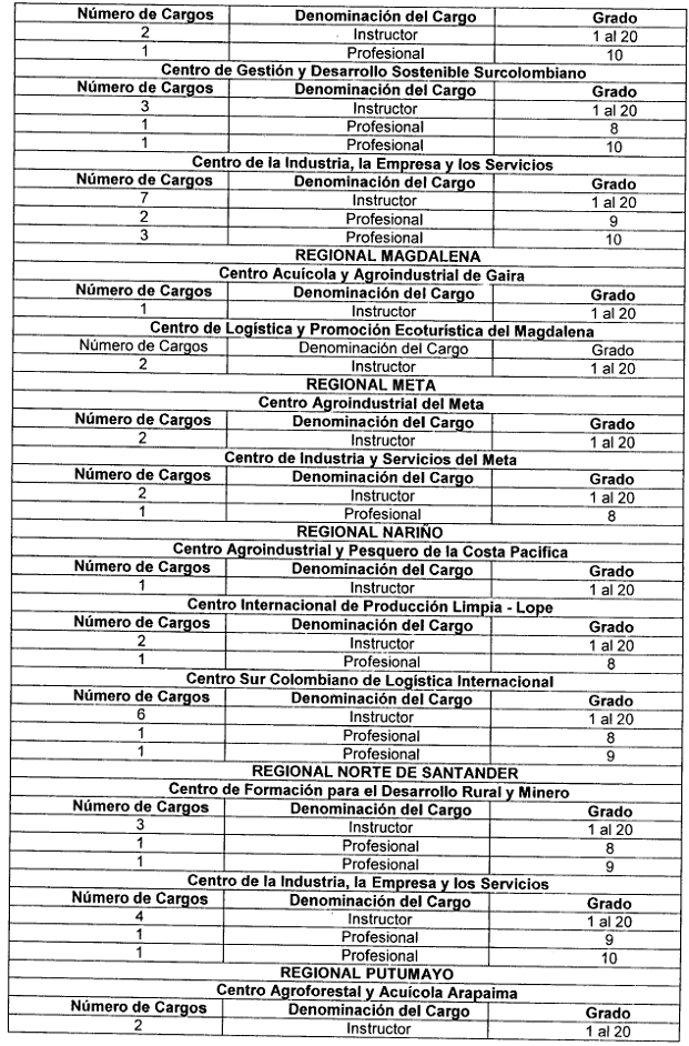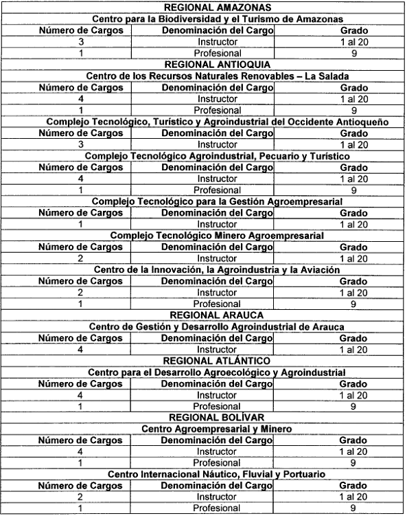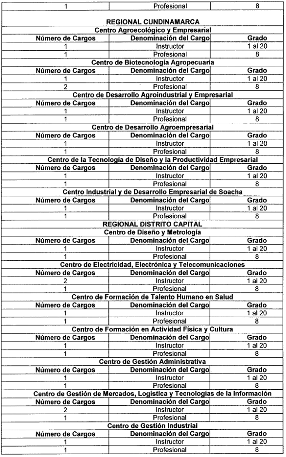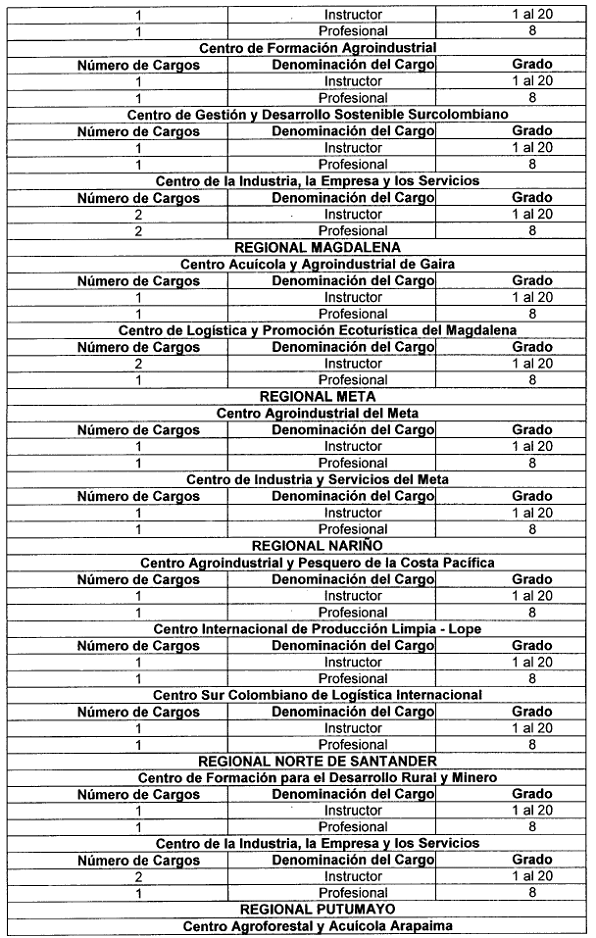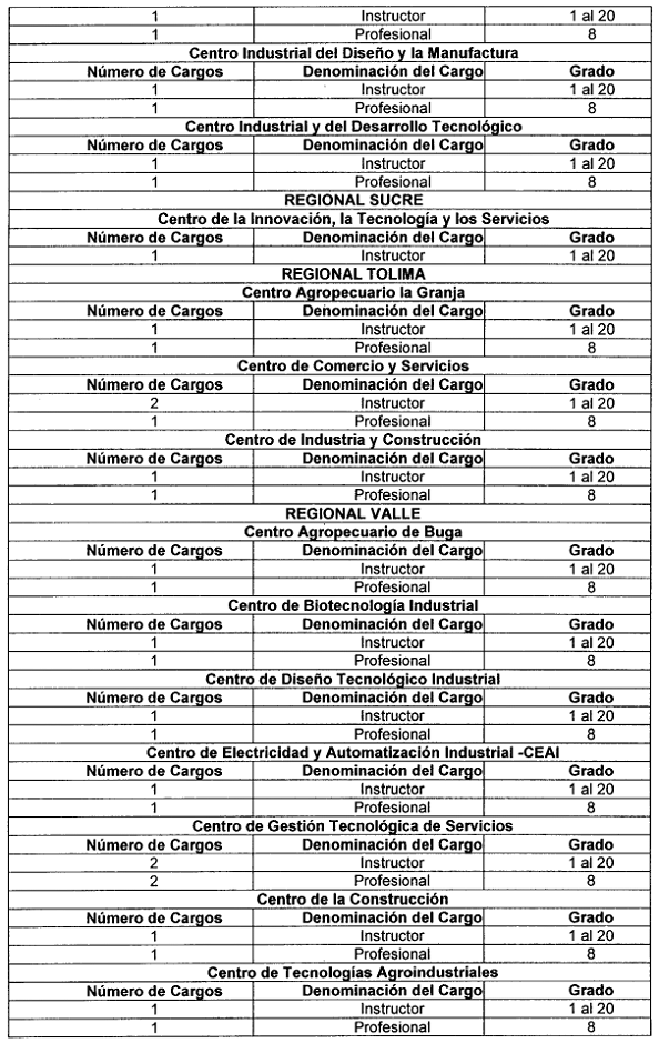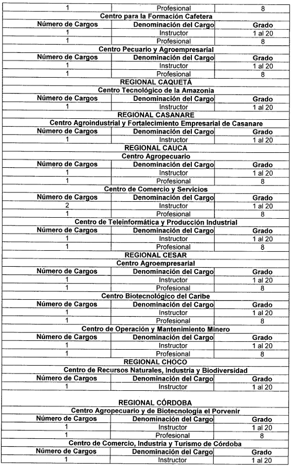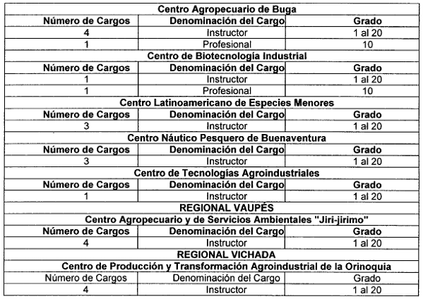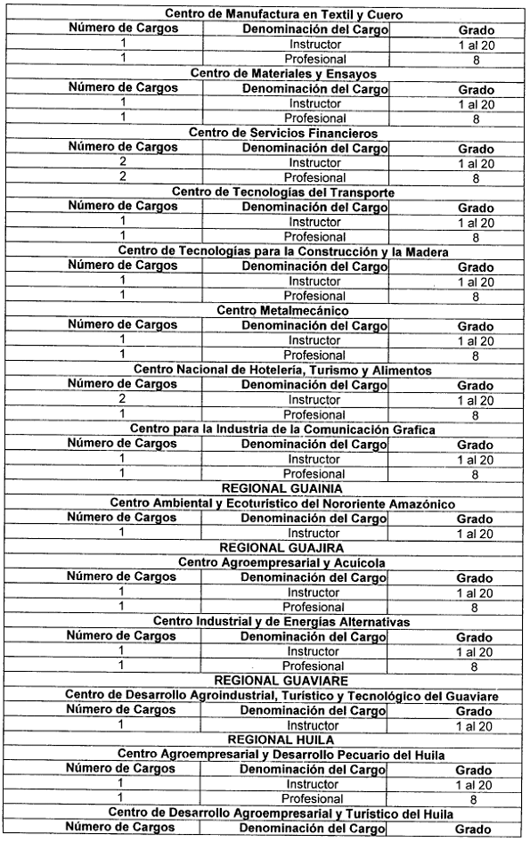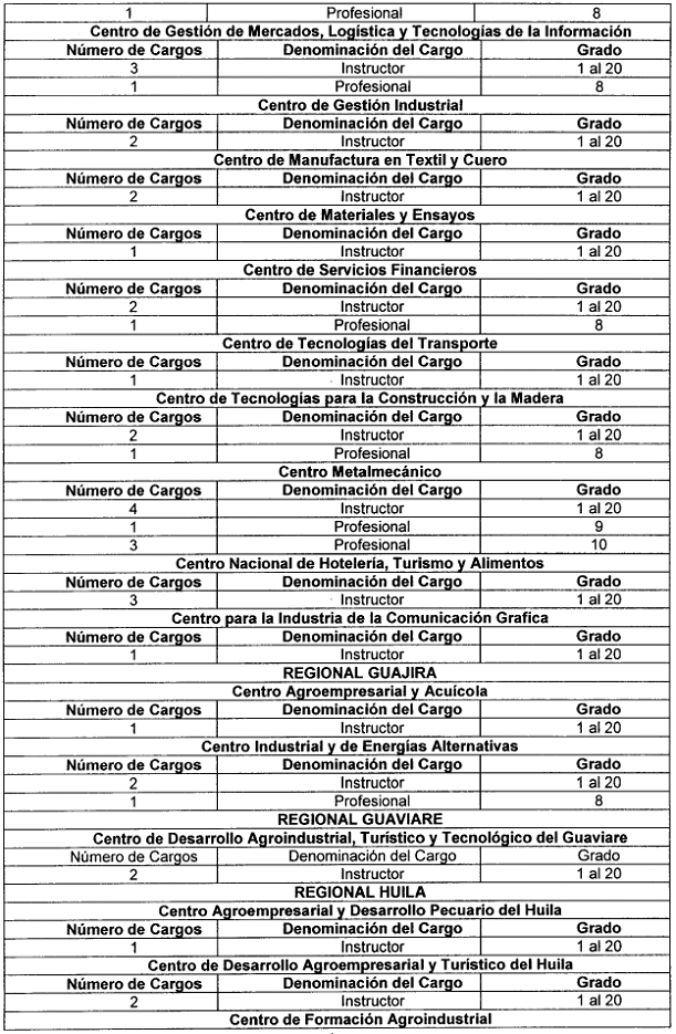 ARTICULO 1o. Ajustar la distribución de los empleos temporales de la planta de personal del SENA, en los siguientes Centros de Formación: