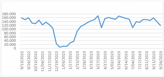 Desde septiembre 2022 hasta septiembre del año 2023, el comportamiento de acceso diario de usuarios (aprendices, instructores, personal administrativo) a la herramienta tecnológica donde se imparte y apoya la formación complementaria y titulada, se refleja en la siguiente gráfica No.3: