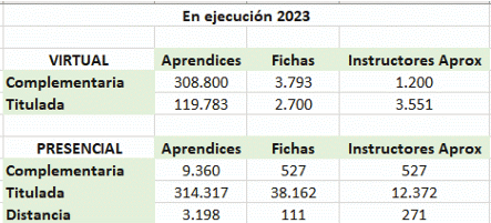 En la actualidad el catálogo de programas de formación titulada y complementaria de conformidad con lo reportado en la página Web de la Entidad asciende a 4.064, de los cuales 647 son titulados y 3.417 son complementarios.