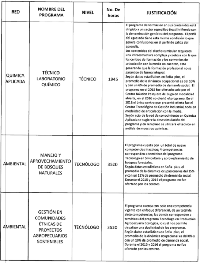 ARTÍCULO SEGUNDO. Desestimular los programas de formación profesional integral que aparecen relacionados en el Anexo 2 de la presente resolución.