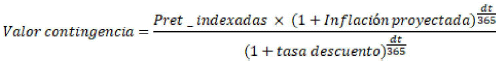 Valor económico de la contingencia. Valor presente de la pretensión de la demanda del proceso, la cual se calcula del valor de la pretensión de la demanda indexado para traer los flujos de dinero a desembolsar en el futuro.
