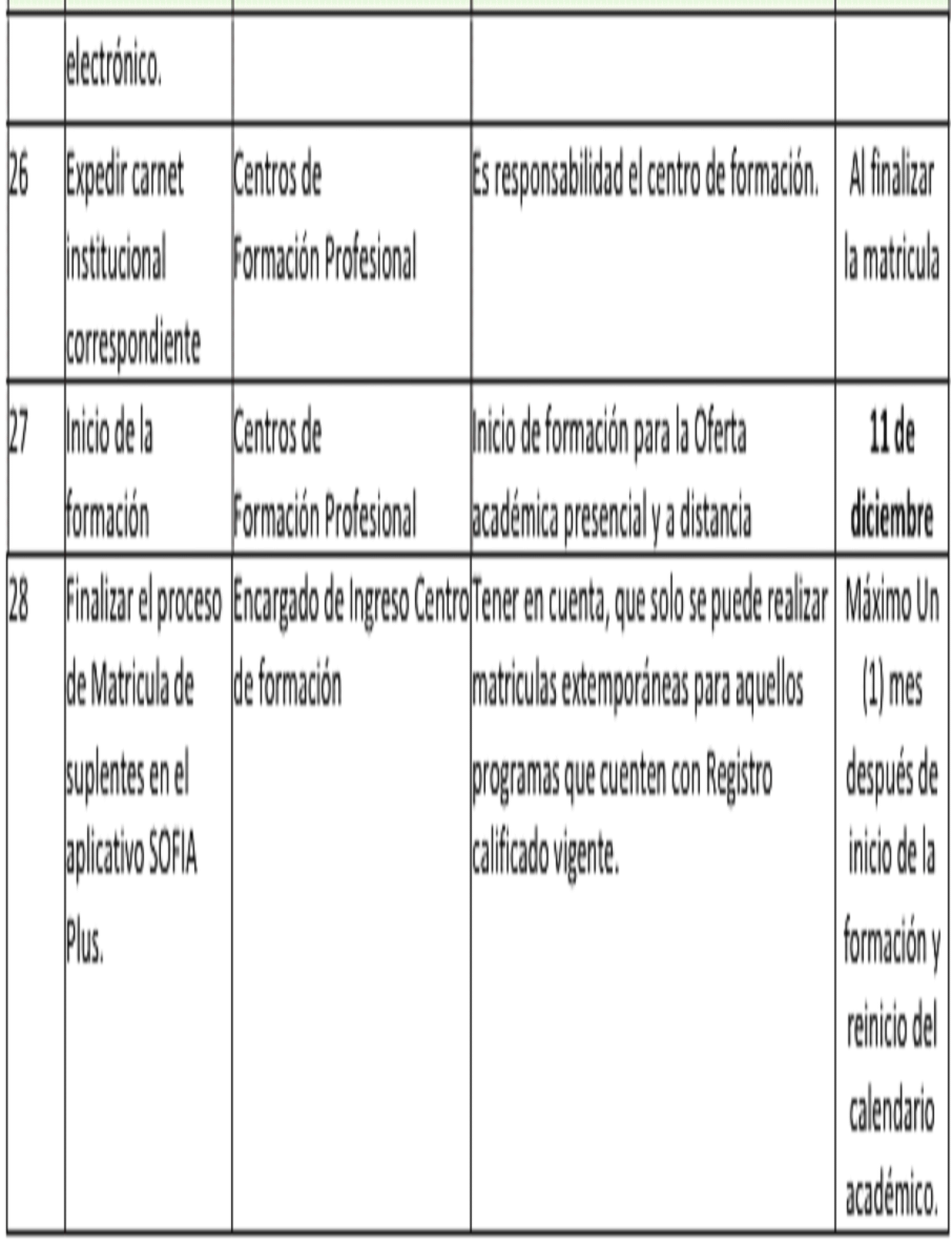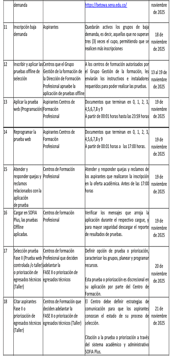 Que en el artículo 3 de la Resolución 1- 03258 de 2025 estableció el Cronograma para el desarrollo de la convocatoria, el cual se hace necesario modificarlo, en virtud de la comunicación recibida por el Grupo de Gestión Pedagógica y Curricular de la Dirección de Formación, donde comunican el vencimiento de registros calificados de varios programas de formación.