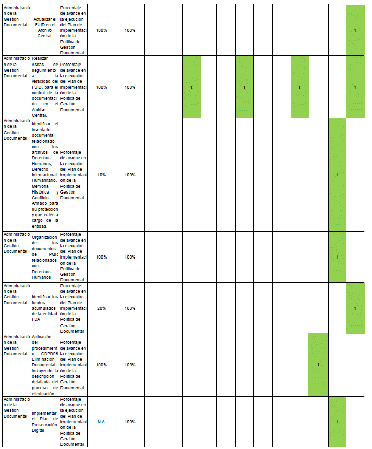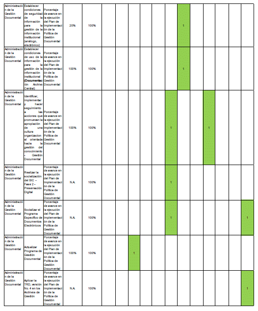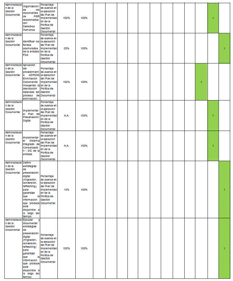 | Ajuste del documento | Mediante NURC-3-2020-3070 solicitaron las siguientes modificaciones: eliminación de los formatos GDFT 33 Formato de capacitación y sensibilización, y GDFT43 Reporte de seguimiento del Sistema integrado de conservación / Plan de conservación documental. Fueron reemplazados por los formatos Lista de asistencia código ASFT04, y Matriz de seguimiento a la ejecución de | Secretaria General | 03/03/2020 |