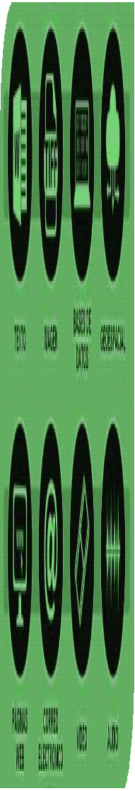 7. Dentro de este amplio espectro, se encuentran los siguientes tipos de información: texto, imagen, bases de datos, geoespacial, páginas web, correo electrónico, video, audio.